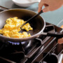 The first thing I noticed about this pan was its unique look. It has a speckled, slightly textured granite surface and a handle that looks like wood but is actually made of Bakelite and is super comfortable to grip. I love the wide surface, so it’s quickly become my go-to breakfast pan for evenly frying scrambled eggs or conveniently placing two fried eggs in.